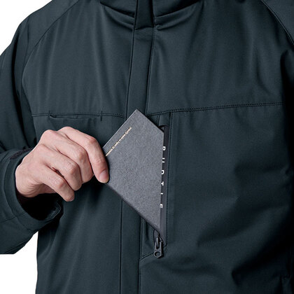 ワークシーンでタフな動きに適応するスーパーストレッチ素材。防水、防風性に優れるラミネート加工とライニングのマイクロフリースが高い保温性を確保。