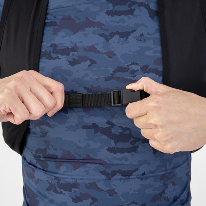 - フロントバックル、ベルト紐で調整可能
