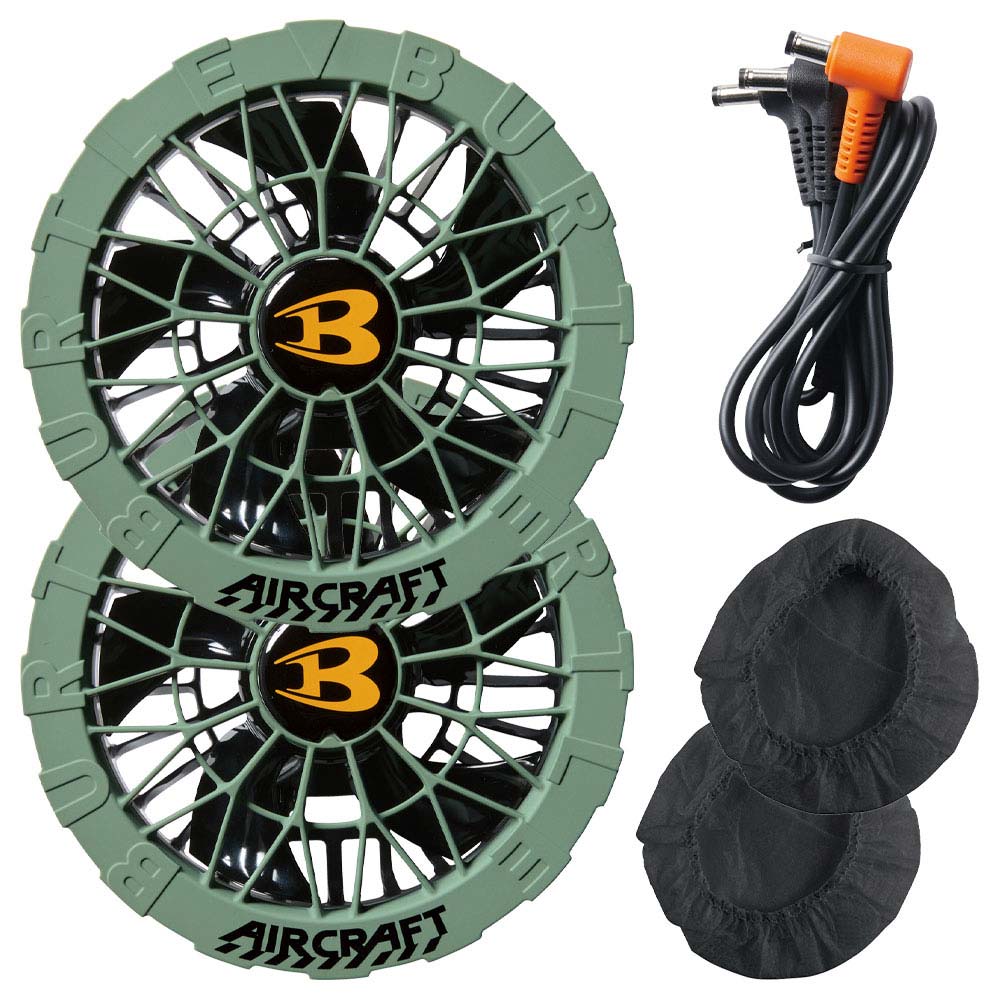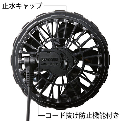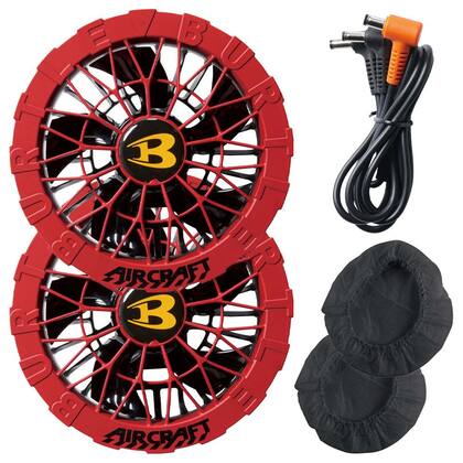 AC09バッテリーの24Vなら、毎秒105リットルもの風を送り込める超高性能モデル。モーターは耐久性に優れたブラシレスタイプ。水洗いに対応した防水設計。粉塵の多い場所での使用に役立つファンフィルター2枚付き。セット内容:ファン×2、ファンケーブル×1、ファンフィルター×2、取扱説明書/保証書×1。