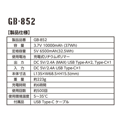モバイルバッテリー 10,000mAh