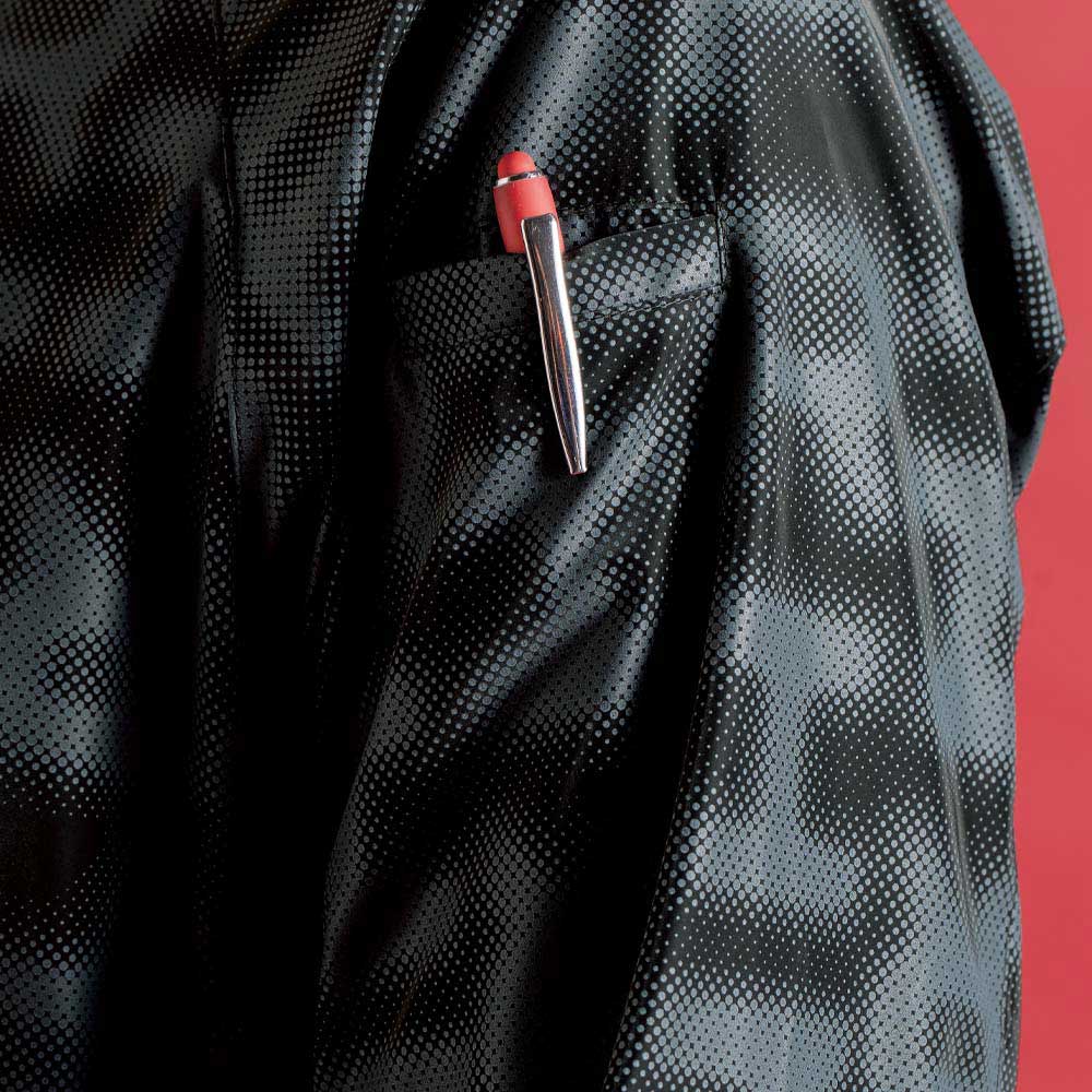 - スタイリッシュな左袖ペンポケット