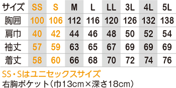 ※SSとSサイズはユニセックスサイズ仕様です。