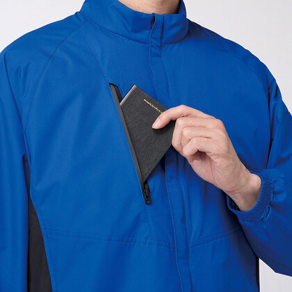 防風性に優れるラミネート加工とライニングのホットメッシュがほどよい保温性を確保。あらゆるチームユニフォームでの着用を想定したシンプルなデザイン。男女ユニセックスの着用に対応。