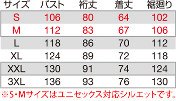※SとMのレディースサイズはボディーラインをよりキレイに見せるジャストフィットシルエット仕様です。