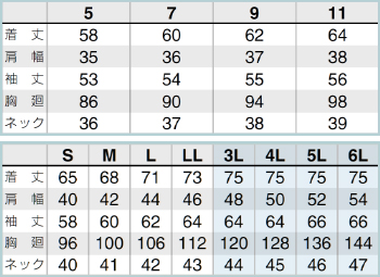 - 5~11号はレディースシルエット