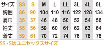※SSとSサイズはユニセックスサイズ仕様です。