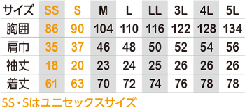 ※SSとSサイズはユニセックスサイズ仕様です。