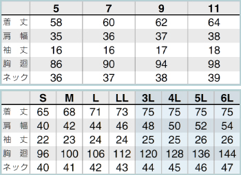 5~11号はレディースシルエット
