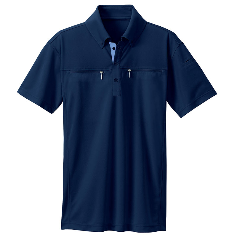 ボタンダウンダブルジップ半袖ポロシャツ(男女兼用)