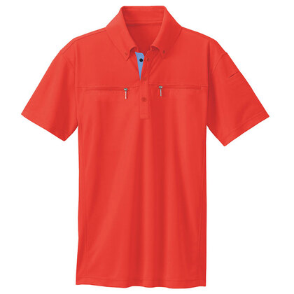 AZ-10602 ボタンダウンダブルジップ半袖ポロシャツ(男女兼用)