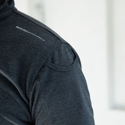 ドライシールの超吸水速乾機能でサラリとドライが持続する。日本製の抗菌防臭加工剤使用。襟には好みのシルエットをキープできるワイヤー入り。