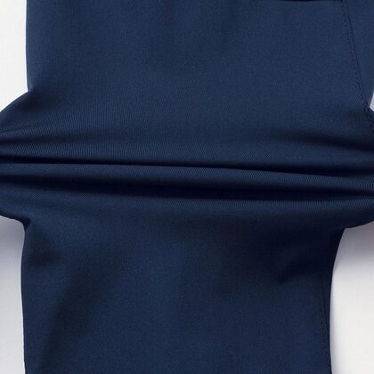 3Dカッティング技術を採用したスリムシルエットスタイル。両脇には収納性の高い大型ファスナーポケット付き。トリコット素材のソフトな着用感、お手入れラクちんの形態安定性もベリーグッド。