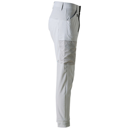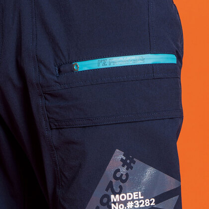 現在の市場で新たなブームを巻き起こしている高性能素材ナイロンサマーストレッチ素材に特殊なレーザー加工技術を駆使し通気孔を発現させ、業界トップクラスの通気性を実現。直射日光等が気になる肩パーツには、通気孔のない通常素材を使用。一般基準約1.5倍の接触冷感指数を実現。紫外線遮蔽率は最高レベルの99%/UPF50を誇り、過酷な夏場での疲労度軽減が期待されます。先進性を表現する止水ファスナーや、国産YKK社製を使用したドット釦等、細部にまで拘りを追及しています。