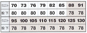 91 ¥100 、 95 ¥100 、 100 ¥100 、 105 ¥200 、 110 ¥300 、 115 ¥300 、 120 ¥400 、 125 ¥400 、 130 ¥500