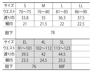 ※この商品の5Lは股下フリーのため、着用するには丈つめが必要です。