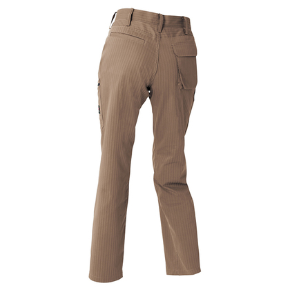 激しく動いても身体にしっかりフィットしてストレスを感じさせない快適ストレッチモデル。ウエストラインがスラリとキマるノータック仕様。縦縞のヘリンボーンが醸す軽快感とカジュアルなカラーリングの絶妙マッチもグッド。