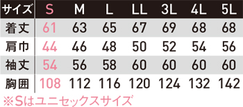 ※Sサイズはユニセックスサイズ仕様です。