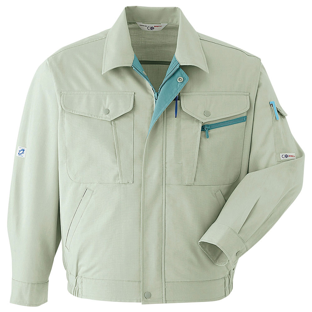 いつでも快適な着心地の長袖ブルゾン。腕の動きをスムースにし、作業性を高める肩口ノーフォーク仕様。雑菌の増殖を防ぎ、イヤなニオイを抑える抗菌防臭加工にも要注目!JIS T-8118対応の高度な帯電防止機能付き。