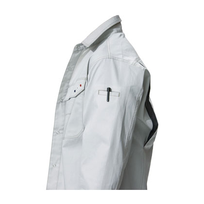 - 左胸ポケットペン差し・通気ハトメ