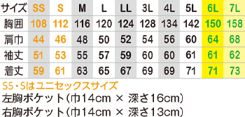 ※SSとSサイズはユニセックスサイズ仕様です。