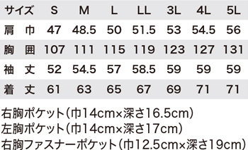 - 右胸ファスナーポケット
