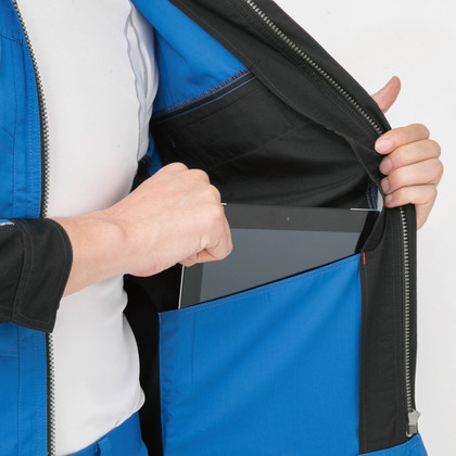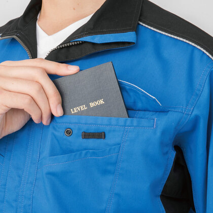 胸ボタンなし!前立てボタンなし!ファスナーやボタンの突起が原因による事故を未然に防ぎ、より安心して作業ができるよう、機能はそのままで表面に突起物が出ない設計にしています。