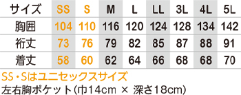 ※SSとSサイズはユニセックスサイズ仕様です。