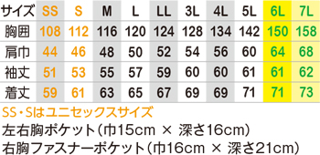 ※SSとSサイズはユニセックスサイズ仕様です。※高視認性安全服のJIS T-8127適合商品ではありません。