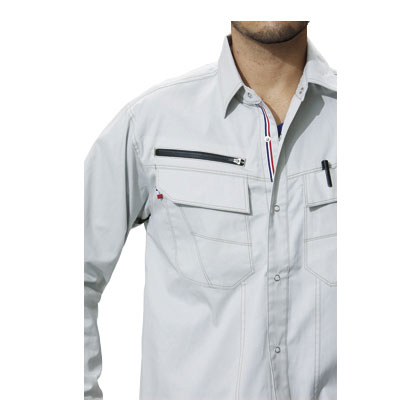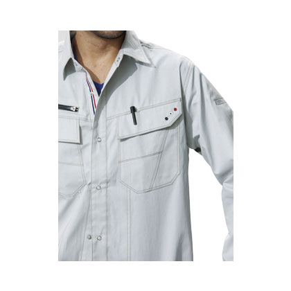 - 左胸ポケットペン差し・通気ハトメ