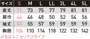 ※Sサイズはユニセックスサイズ仕様です。