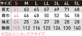 ※Sサイズはユニセックスサイズ仕様です。