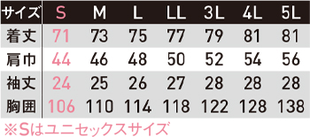 ※Sサイズはユニセックスサイズ仕様です。