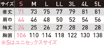 ※Sサイズはユニセックスサイズ仕様です。