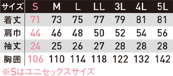 ※Sサイズはユニセックスサイズ仕様です。
