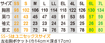 ※SSとSサイズはユニセックスサイズ仕様です。