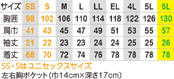 ※SSとSサイズはユニセックスサイズ仕様です。