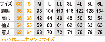 ※SS、Sサイズはユニセックスサイズ仕様です。