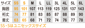 ※SS、Sサイズはユニセックスサイズ仕様です。
