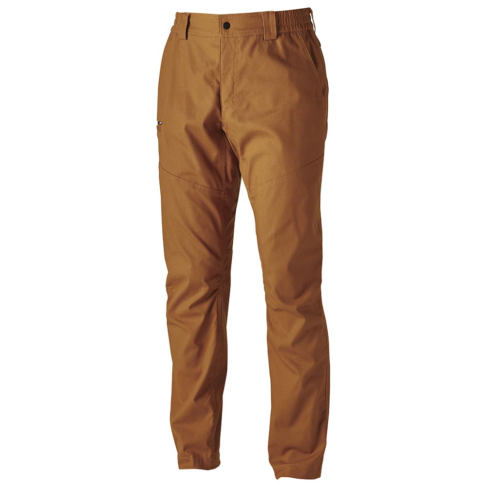 経糸に綿100%の糸、緯糸にポリエステル芯を綿で包んだ二重構造糸を使用することで、綿そのものの風合いを持つハイブリッドコットンシリーズ。伸長率14%のストレッチ性を備え、股下に開脚をサポートするクロッチを採用し、圧倒的な動きやすさを実現。右腿玉縁ポケット付き。