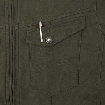- 左胸ペン差し付きフラップポケット