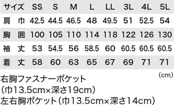 - 左胸ポケットはペン差し付き