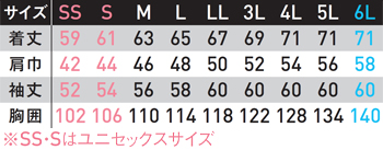 ※SSとSサイズはユニセックスサイズ仕様です。