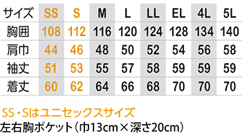※SSとSサイズはユニセックスサイズ仕様です。