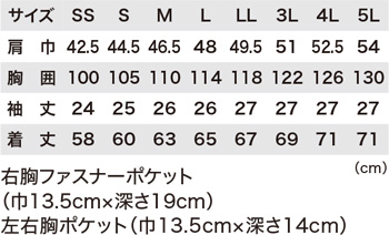 - 左胸ポケットはペン差し付き